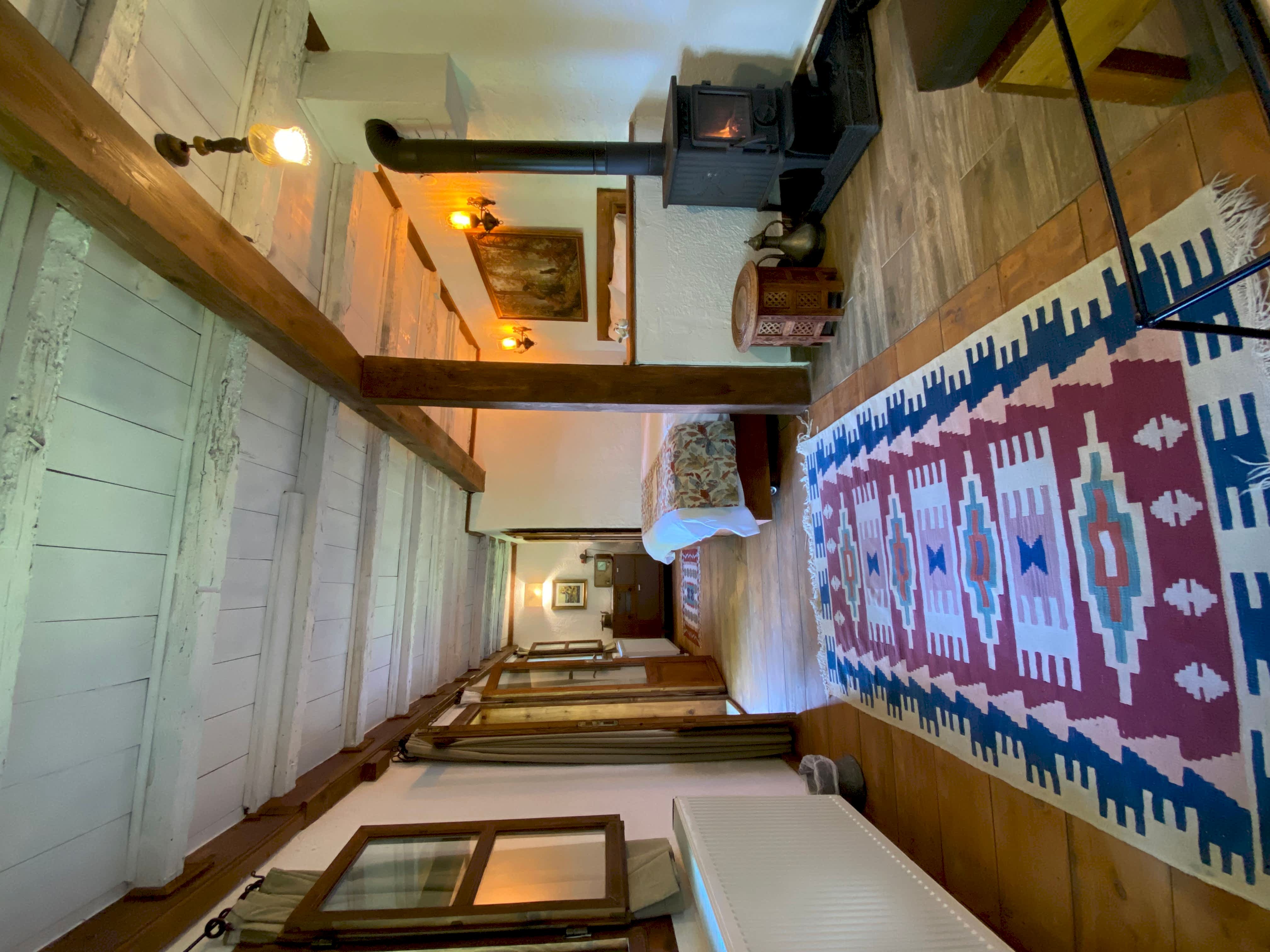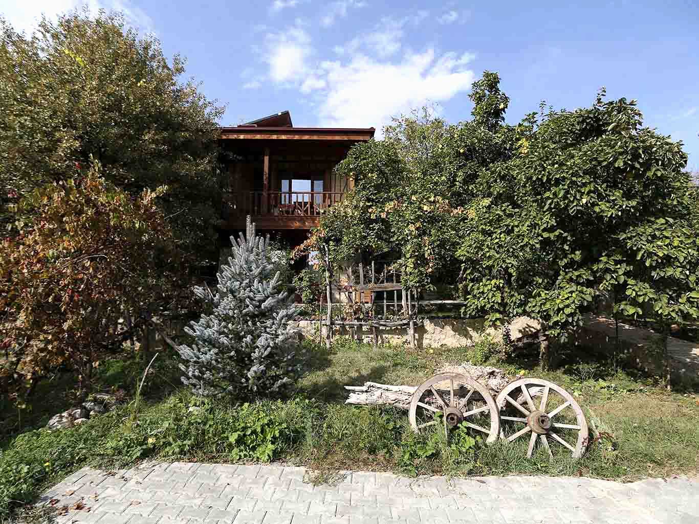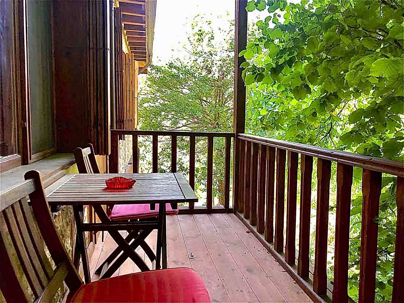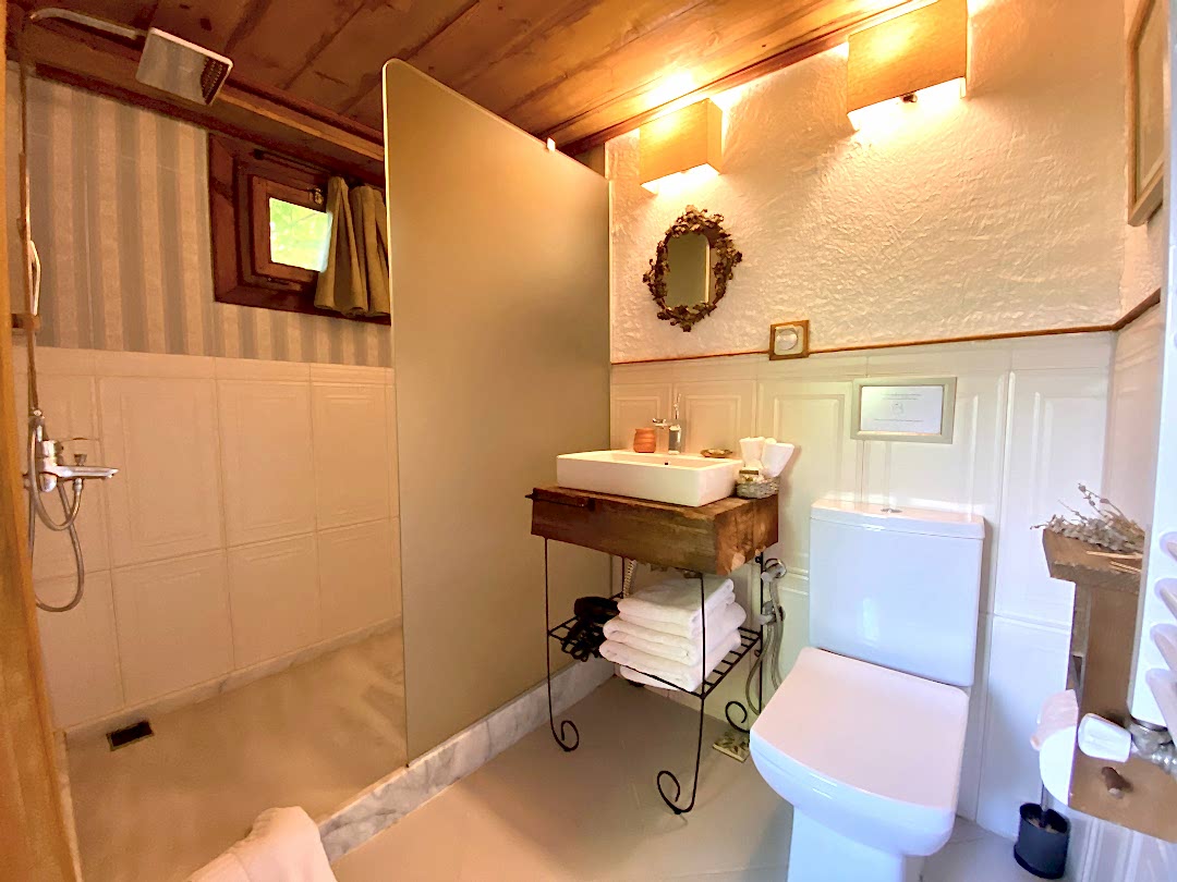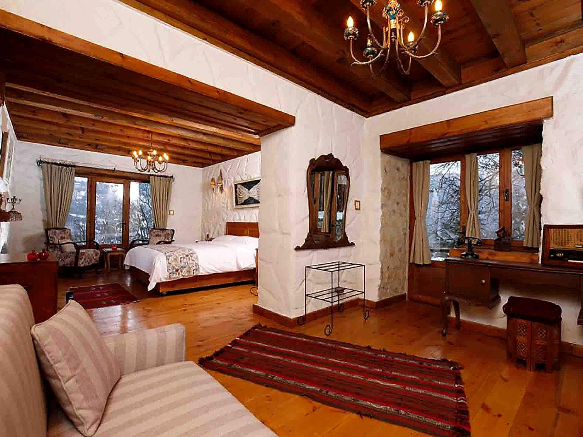 Taş evimizin 1. Katında yer alan odamız, camından ve büyük balkonundan etrafımızı çevreleyen ormana doğru sonsuz bir manzara sunar.. Balkonuna uzanan meşe ağacında, lezzetli meşe palamutlarının peşinden koşan sincaplara rastlamanız mümkün..
