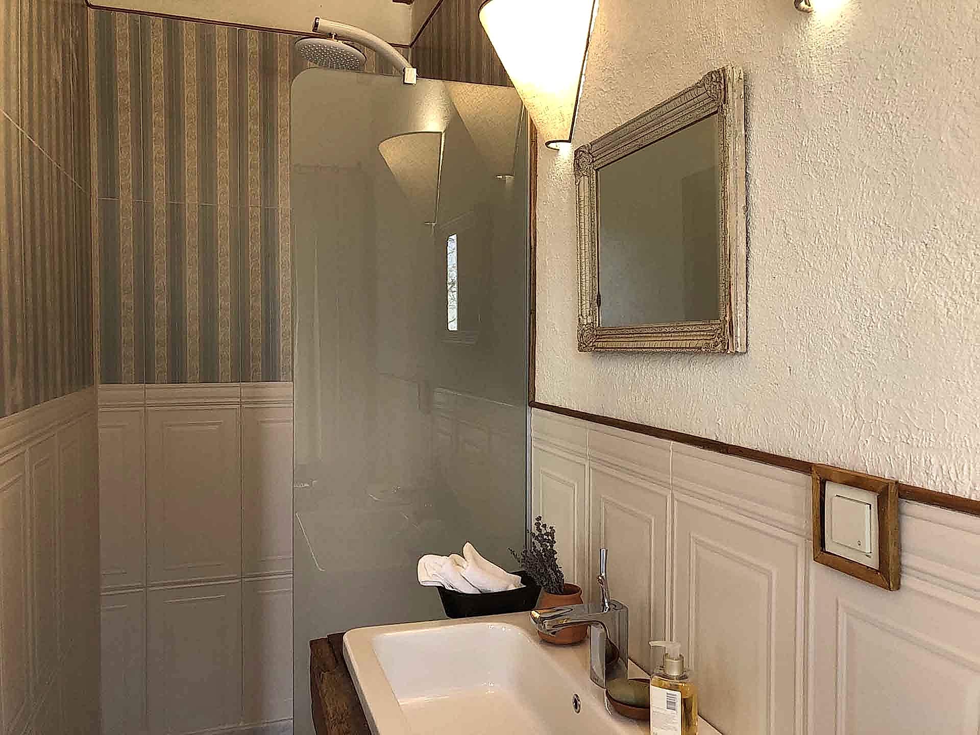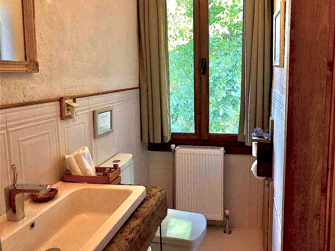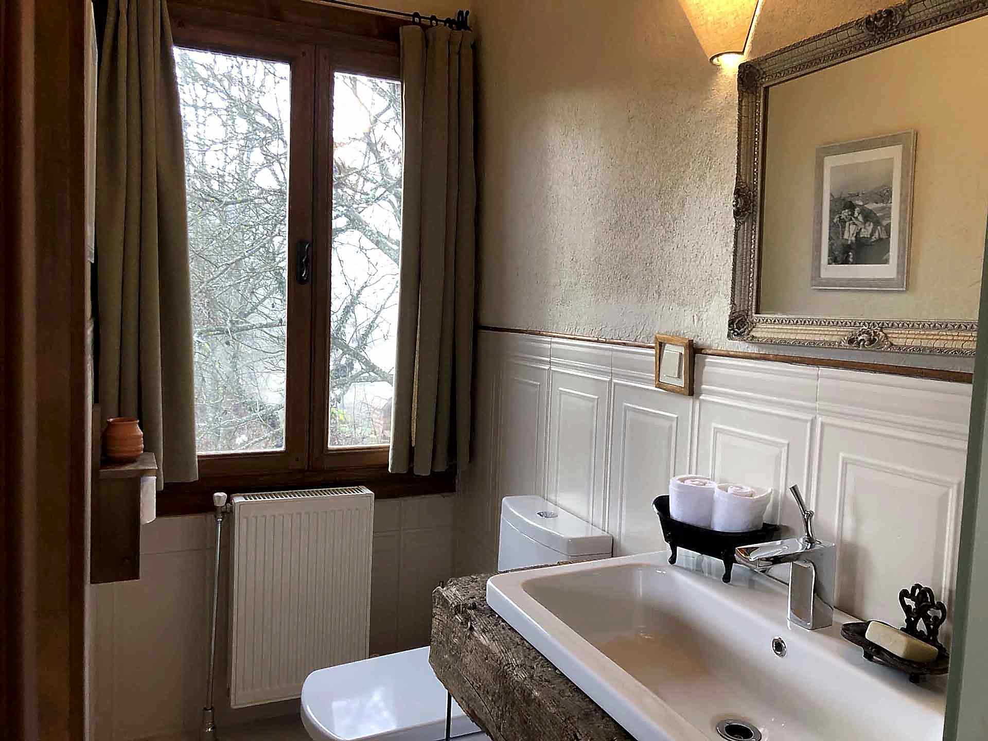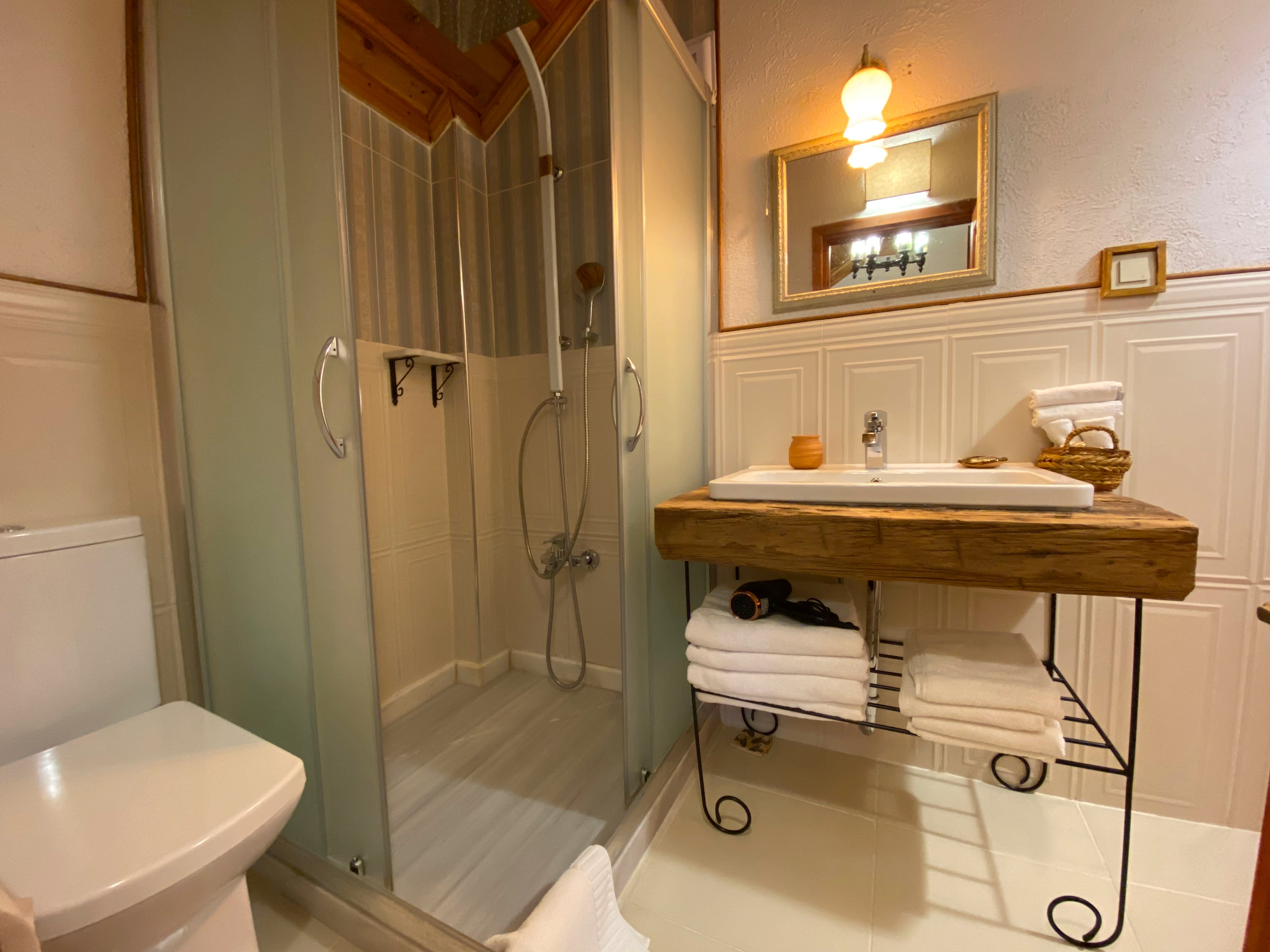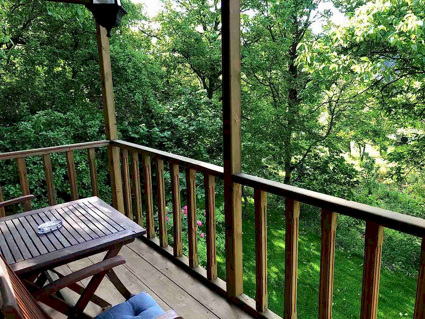 Taş evimizin 1. Katında yer alan odamız, camından ve büyük balkonundan etrafımızı çevreleyen ormana doğru sonsuz bir manzara sunar.. Balkonuna uzanan meşe ağacında, lezzetli meşe palamutlarının peşinden koşan sincaplara rastlamanız mümkün..