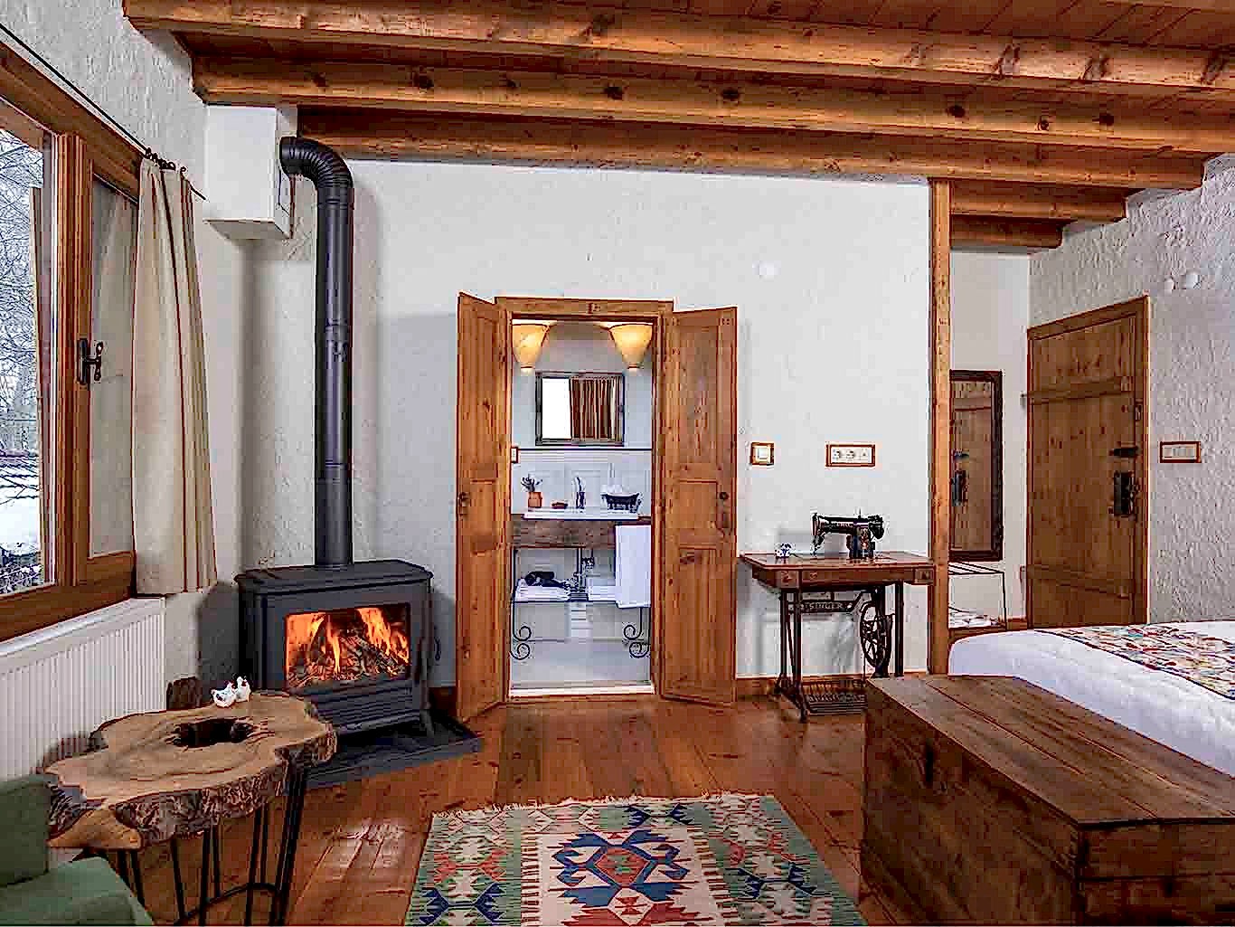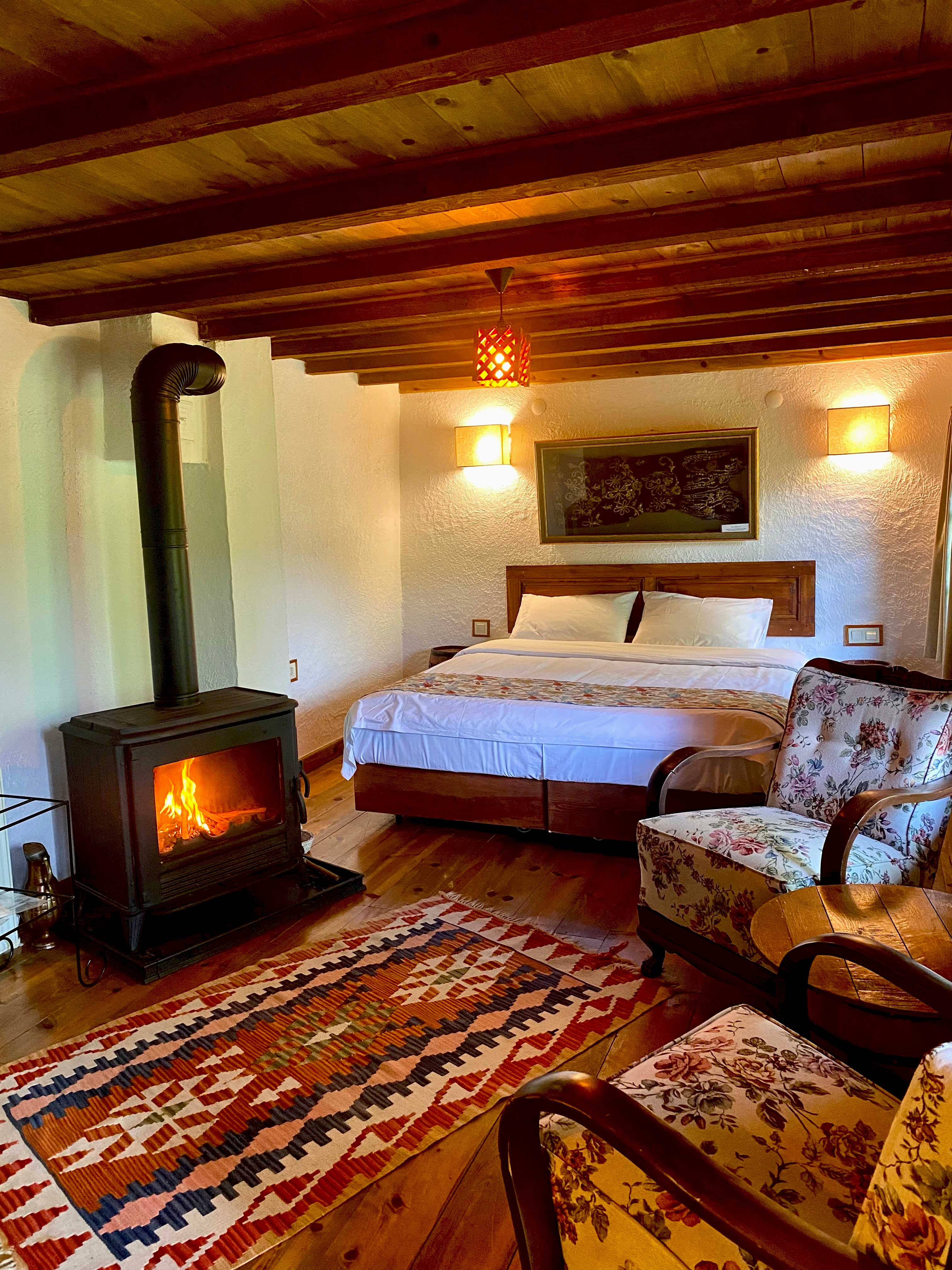 Bebekler gibi uyumanız için dikkatle tasarladiğımız yataklar, özenle dizayn edilmiş banyosu, ahşap tavanlarının verdiği hoşluk, merkezi ısıtmanın yanısıra, kışın, ateşin sıcaklığıyla mest eden camlı döküm sobası, size unutulmaz bir konaklama sağlayacak..